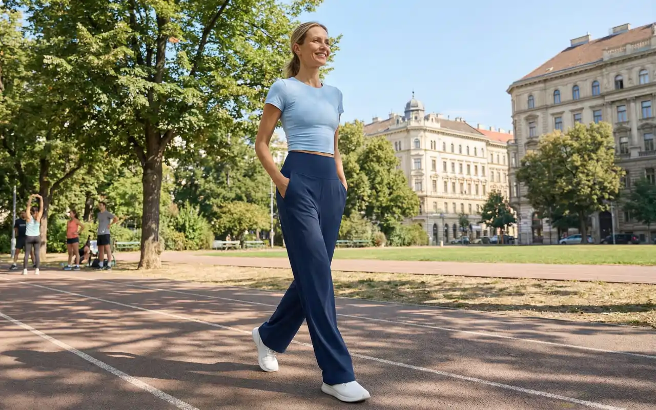 Folosesc pantalonii lejeri pentru plimbările de dimineață și pentru drumuri rapide. Rămân uscată tot timpul și sunt surprinzător de moi pe piele. Aș cumpăra din nou!