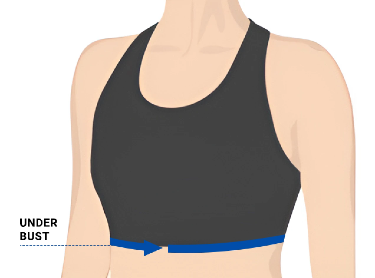 - 1. Înfașoară centimetrul de măsură în jurul cutiei tale toracice, direct și uniform sub bust.