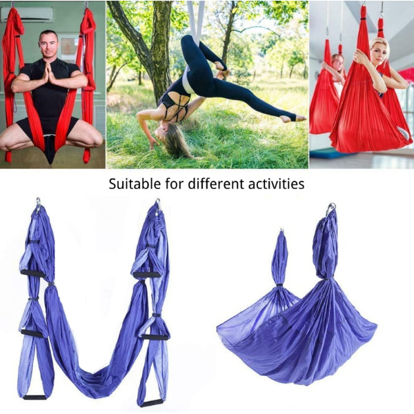 ✔️ MULTIFUNCȚIONAL – Hamacul nostru aerian poate fi folosit nu doar ca exercițiu de yoga aeriană, ci și ca hamac obișnuit, perfect pentru acasă, studio de yoga sau călătorii în aer liber. Poate fi folosit chiar și pentru un picior accidentat.